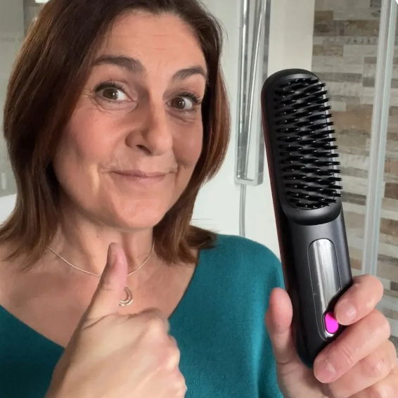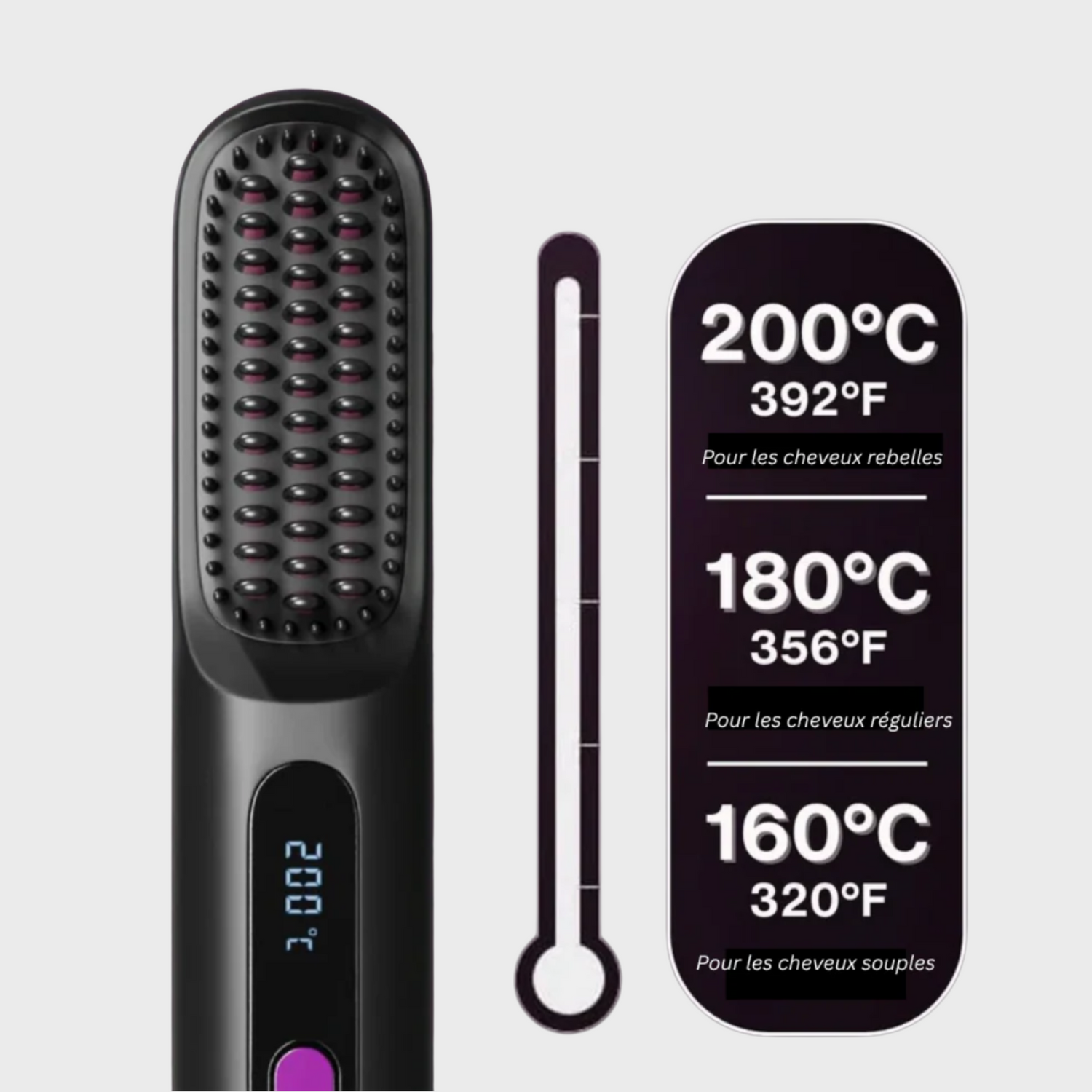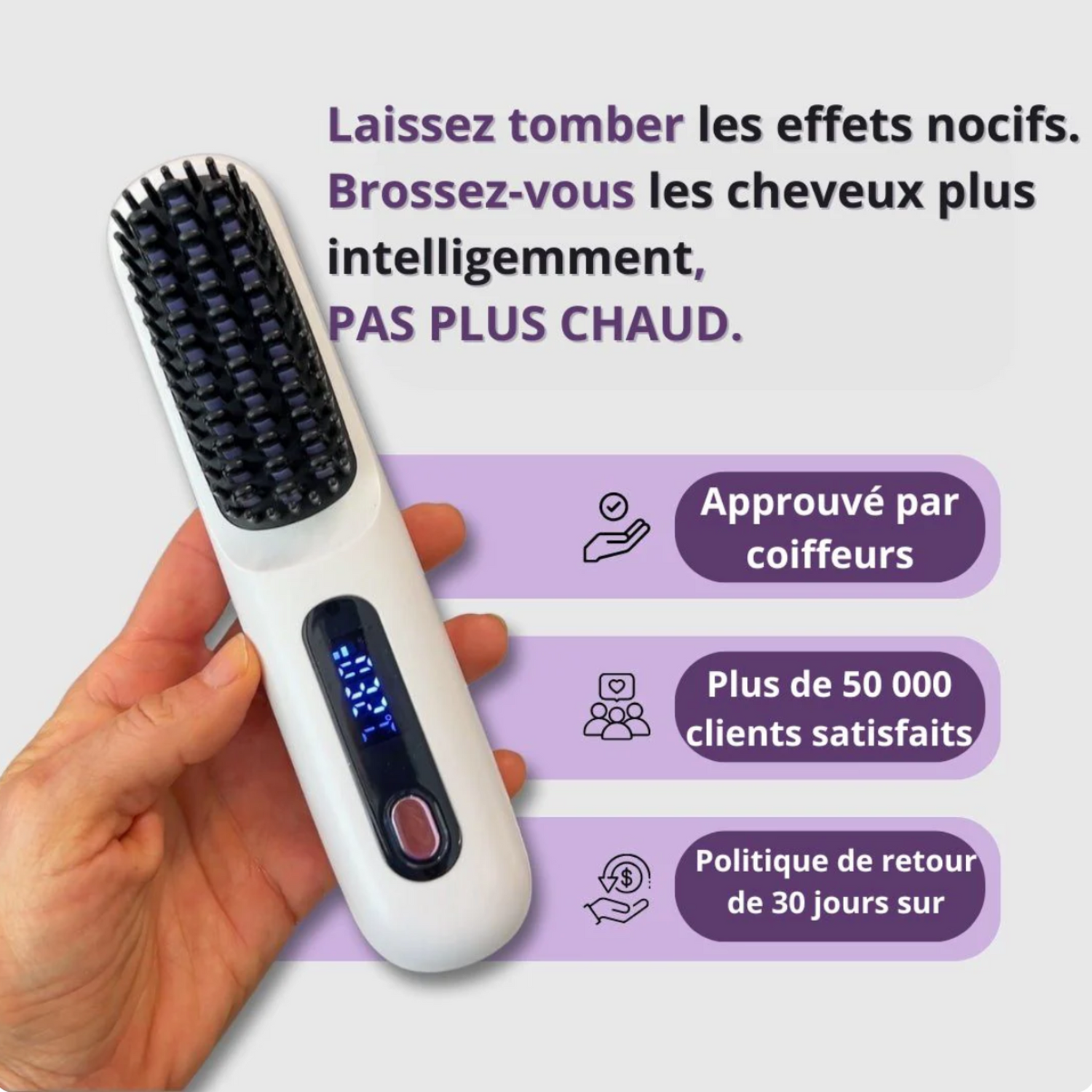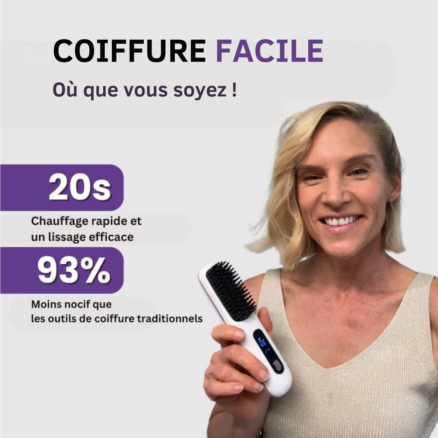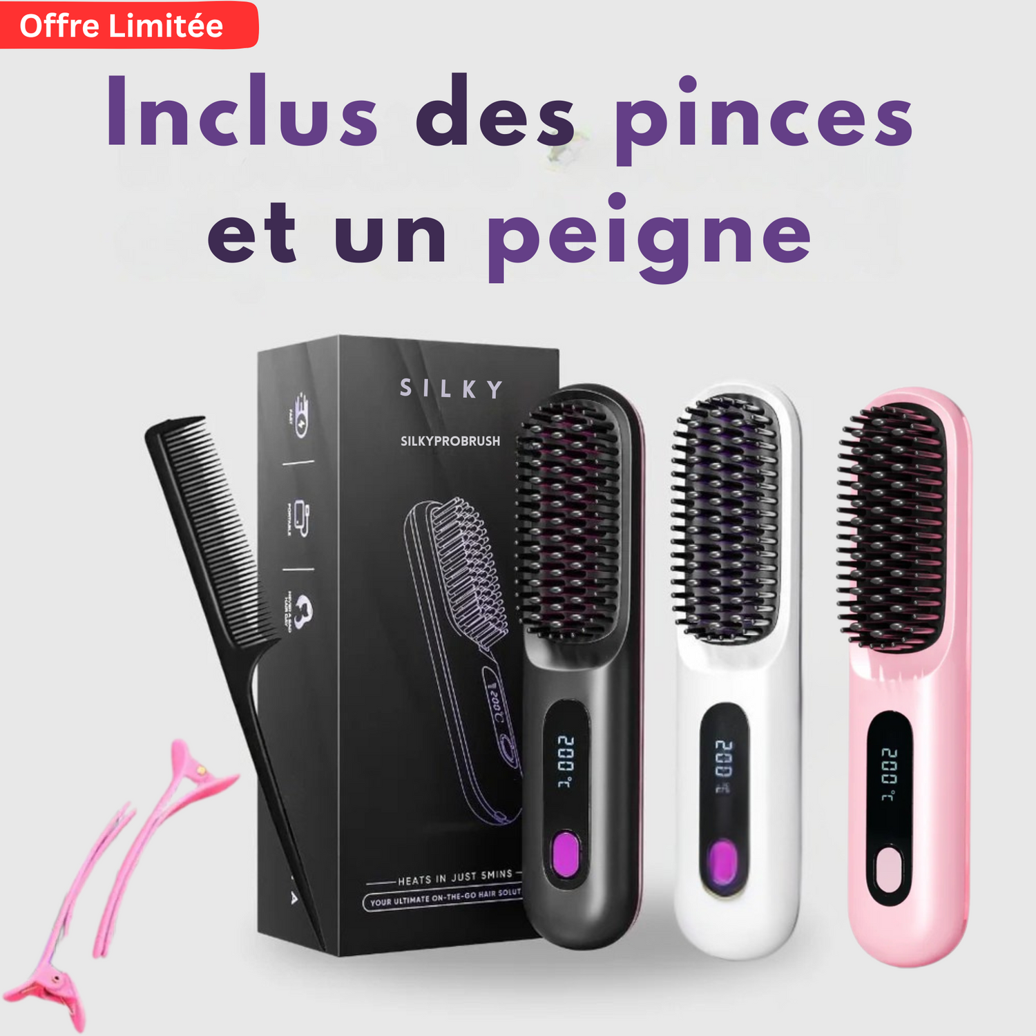 - Brosse Lissante Portable – Silky™ Poignée ergonomique et revêtement céramique anti‑frisottis